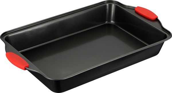 Съемные силиконовые ручки позволяют быстро и безопасно извлекать форму из духовки, не боясь обжечься.